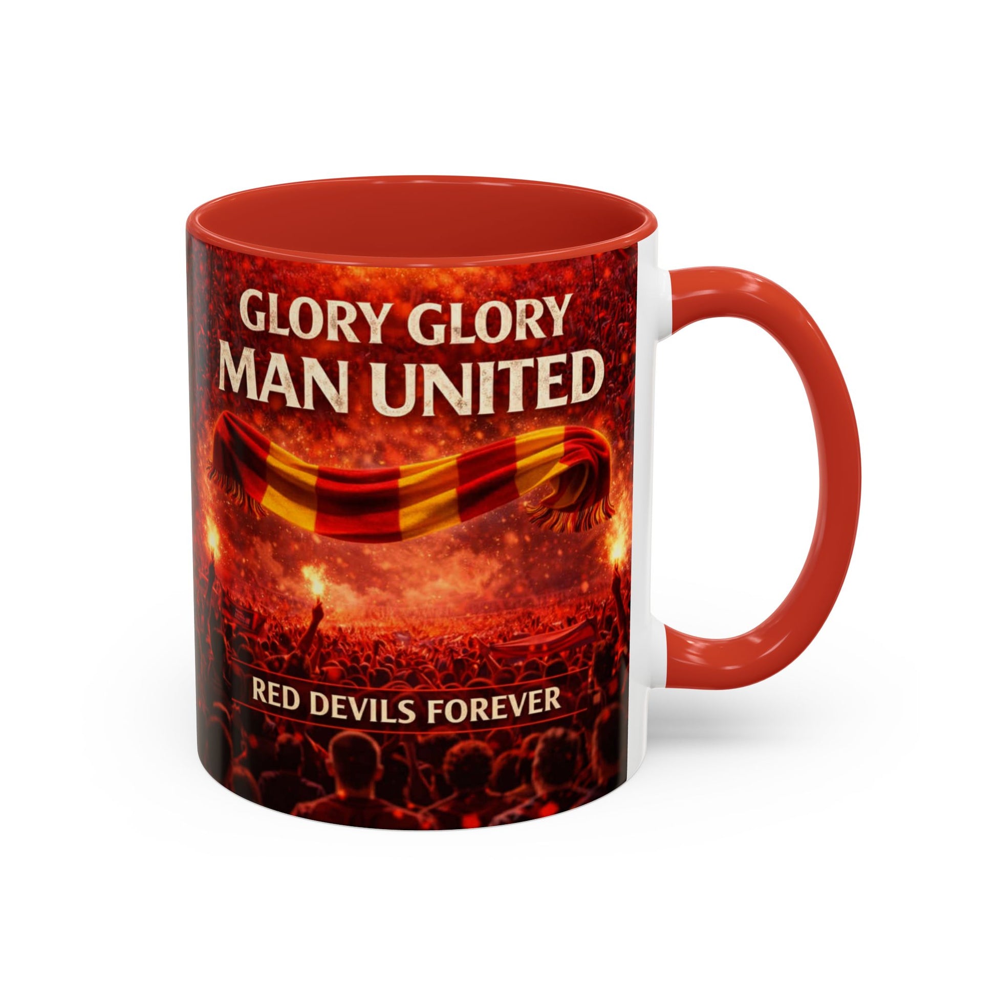 Esta taza de cerámica brillante captura la atmósfera vibrante de un estadio lleno: multitudes rugientes, bengalas y bufandas en alto. Rojos cálidos y negros intensos la envuelven en un color de alto contraste, haciendo que cada pausa para el café se sienta como un momento entre otros aficionados. El asa en forma de C y el acabado suave y brillante se sienten cómodos en la mano, mientras que la cerámica resistente mantiene las bebidas calientes. Es el tipo de pieza que se encuentra junto a tu escritorio, aportando la energía de un día de partido a las mañanas tranquilas y conversaciones animadas a las bebidas compartidas.