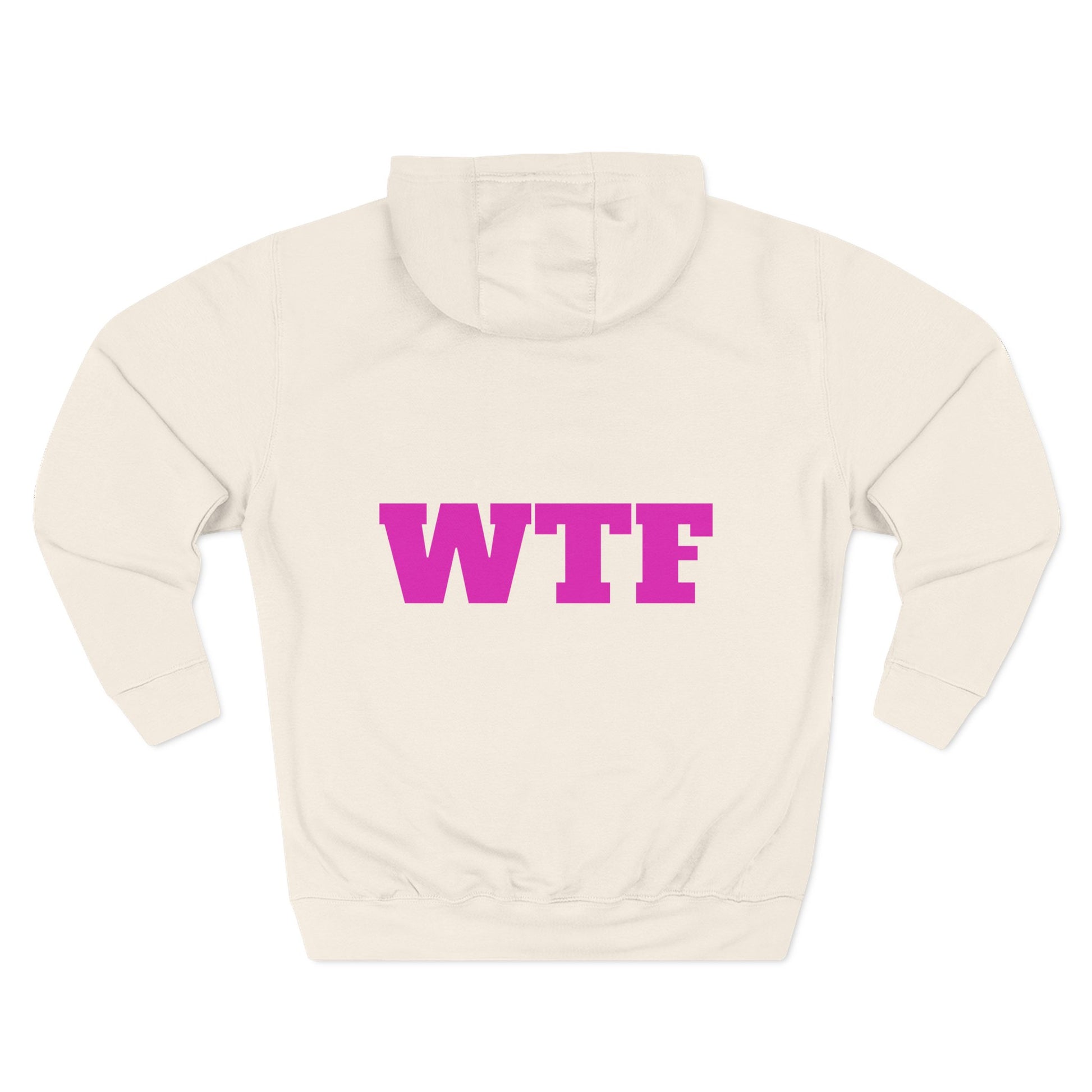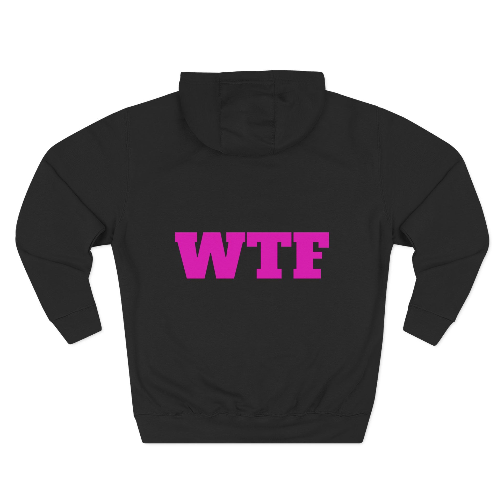 Casual, bold, and a little irreverent — this hoodie speaks with attitude. The roomy kangaroo pocket and adjustable hood make it an easy go-to for cool mornings, late-night runs to the corner store, or lounging while you binge your favorite show. The front carries a simple, expressive portrait-style illustration with clean line work and bright hair color that reads like a quick, sarcastic side-eye. The back answers with oversized, block-letter text in bright pink: three blunt letters that make a statement without saying anything else. The soft, medium-heavy fleece feels substantial but not bulky, drapes in a regular fit, and wears in without losing shape thanks to neck tape and reinforced seams. Offered with an option for embroidered placement on the chest if you want a subtler version of the design. This is for someone who values comfort, loves an ironic wink, and wants clothing that talks back when the occasion calls for it.